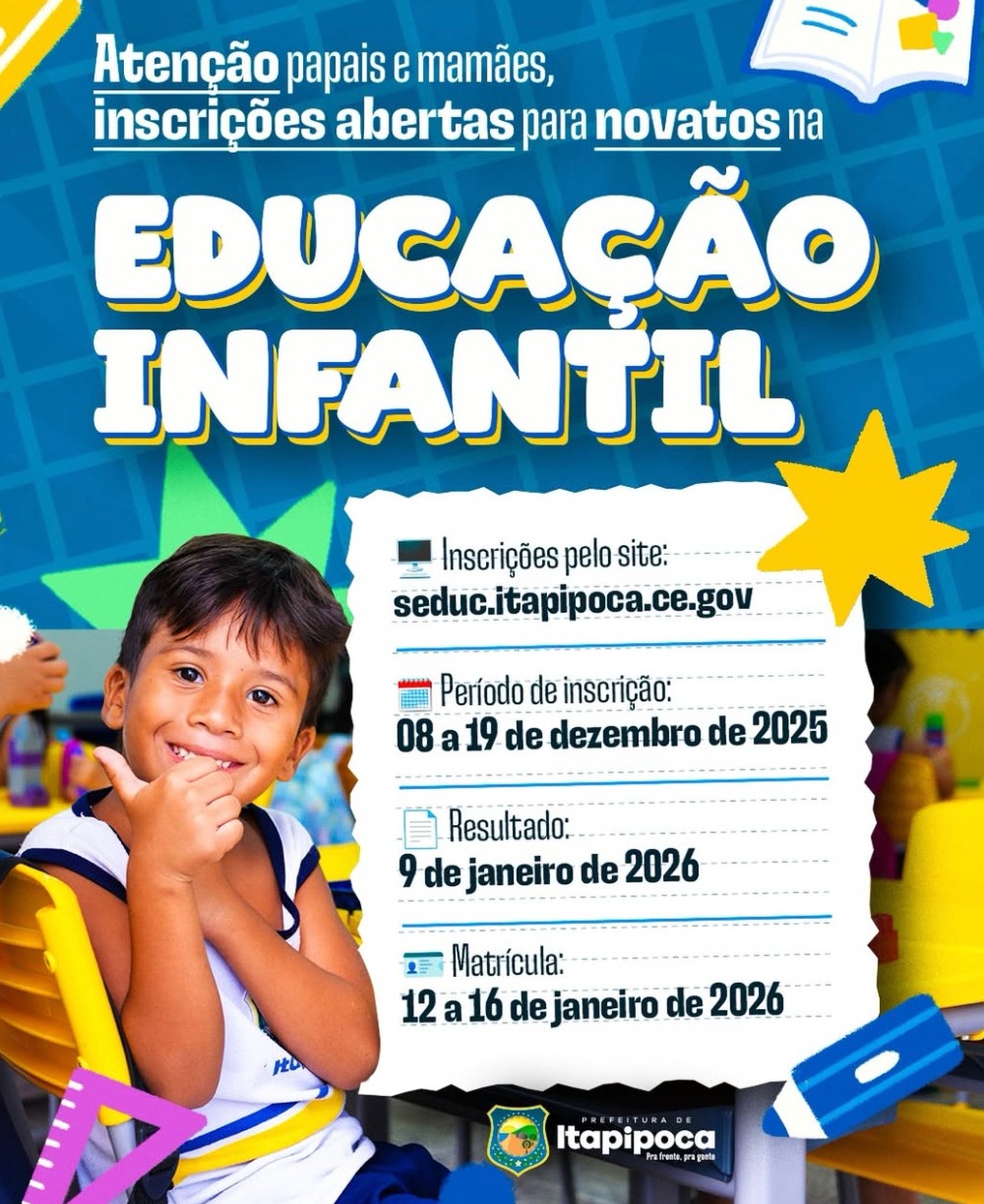 A Secretaria Municipal de Educação informa que estão abertas as inscrições para novas matrículas (novatos) na Educação Infantil dos Centros de Educação Infantil (CEIs), para o ano letivo de 2026. Serão ofertadas 1240 novas vagas para crianças que irão ingressar pela primeira vez na rede municipal. Para realizar sua inscrição, clique aqui. Em caso de […]